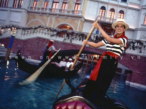 | Chèo thuyền trên dòng Venetian rất thơ mộng. |