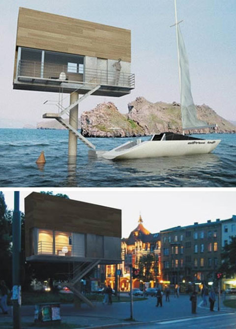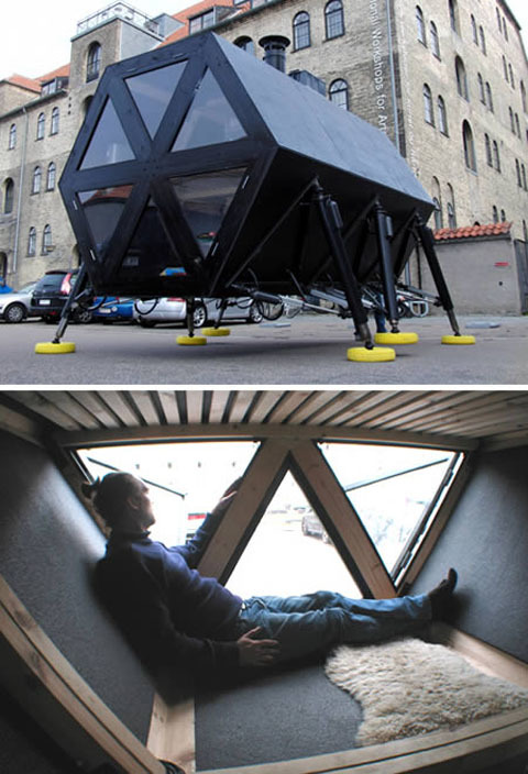 Ngôi nhà đi bộ (Walking House) là một cỗ máy thực sự, cho phép người sống trong đó có thể di chuyển chậm đến nhiều nơi khác nhau mà không bị tác động của môi trường bên ngoài.