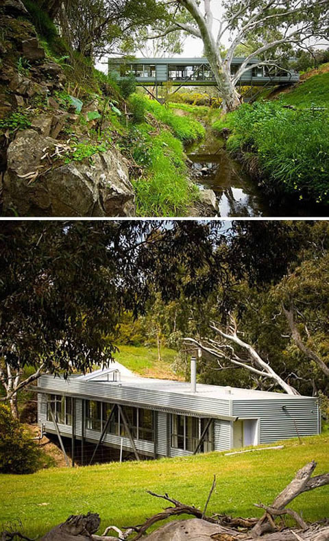 Kiến trúc sư Max Pritchard thiết kế một cây cầu, đồng thời là ngôi nhà bắc qua một con suối, được bao bọc xung quanh bởi khung cảnh rừng núi.