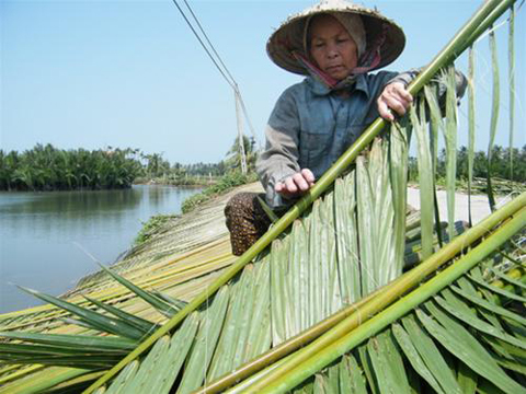 Đến mùa thu hoạch người dân dùng những ghe bầu ra đốn lá dừa, đến độ miệng ghe chìm đến ngang bằng mặt nước. Lá dừa được rọc ra làm đôi phơi hai bên đường, sau đó sẽ được đánh thành tranh và bán thành phẩm. Làng tranh dừa Cẩm Thanh rất nổi tiếng gần xa vì vậy