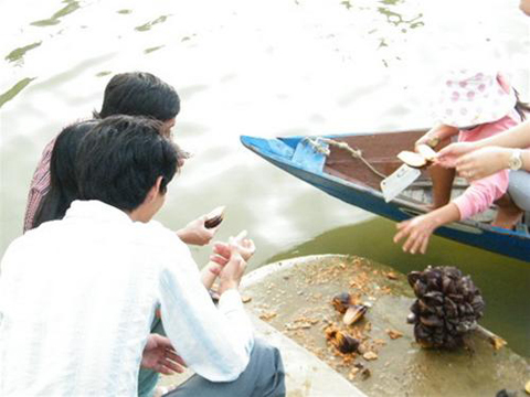 Lênh đênh trên những chiếc thuyển tham quan rừng dừa Bảy Mẫu và hít thở không khí trong lành là thú vui không phải lúc nào cũng có được.