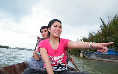 | Từ bến thuyền Bạch Đằng (trong phố cổ Hội An), bạn có thể đi thuyền hoặc theo con đường xanh bạt ngàn về rừng dừa |