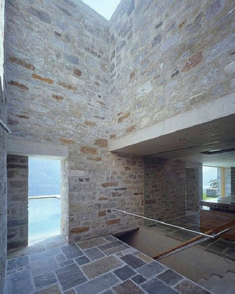 Ngôi nhà nằm trong thung lũng Verzasca. Đá lát bên ngoài tòa nhà hoàn toàn là đá tự nhiên lấy từ sườn núi. Chính điều này, làm cho căn nhà gần gũi với thiên nhiên hơn. Toàn bộ tường và vách ngăn trong ngôi nhà cũng được lát bằng đá.