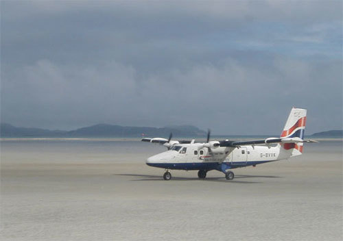 | Sân bay Barra ở Scotland là nơi duy nhất trên thế giới nằm cạnh bãi biển. Việc hạ cánh thường xuyên bị ảnh hưởng trực tiếp từ thủy triều. |