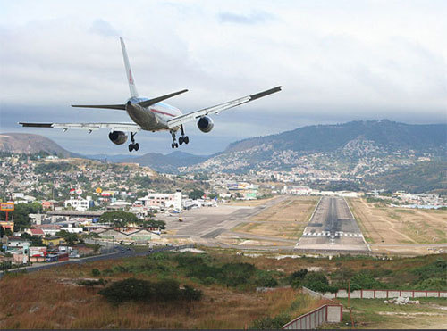| Tại sân bay Toncontin (Tegucigalpa, Honduras), phi công chỉ cất cánh khi máy bay quay 45 độ. |