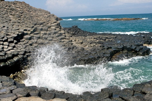 Nhìn từ xa, gành trông như những chồng đĩa trong lò gốm hay trò chơi logo nhô ra