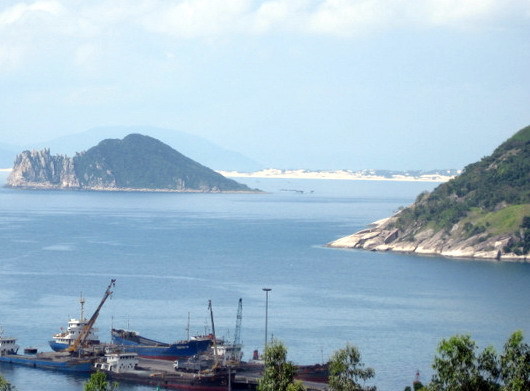 Phú Yên, cách bờ khoảng 7km. Nhìn từ đất liền, đào như một tấm thảm xanh phủ