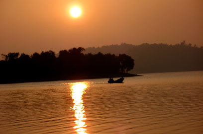 | Hoàng hôn tuyệt đẹp trên hồ Bến En. |