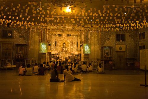 Nếu những du khách đến tham quan, ai cũng muốn được chiêm ngưỡng các bức tượng Phật bằng vàng được cất trong hộc thờ và được bảo vệ bằng mấy lớp cửa sắt đặt bên trong lõi tháp, thì dân chúng quanh vùng thường vào làm lễ ở điện thờ bên cạnh rồi ngồi hóng gió, nói chuyện quanh sân chùa, kể cả các cặp tình nhân.