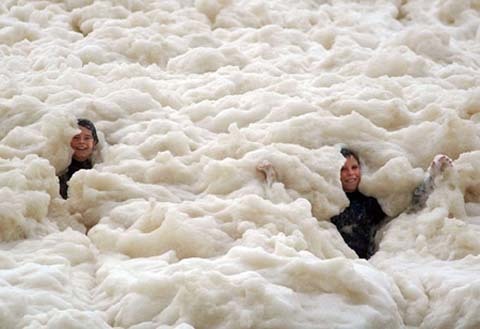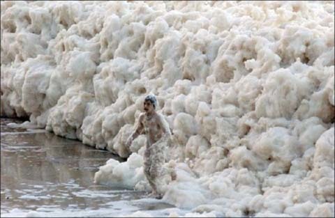 Hãy tưởng tượng, nếu một ai đó đem hàng tấn cà phê và sữa hòa tan dưới biển cho đến khi tạo bọt tung lên, những con sóng biển này sẽ mang bọt vào bờ. Đó chính là hiện tượng “bọt biển” hay còn được biết đến với tên gọi "bọt cà phê Capuchino", rất hiếm khi xảy ra. Hiện tượng này có thể khiến cho cả một khu vực bãi biển rộng lớn biến thành bồn tắm đầy bọt xà phòng chỉ trong vài phút.
