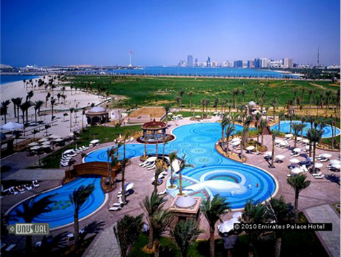 Tọa lạc ở khu đất vàng gần bờ biển tại thủ đô Abu Dhabi (UAE), khách sạn Emirates Palace chính thức được khánh thành tháng 11/2005 với 394 phòng ngủ các loại. Nơi đây thường xuyên đón tiếp những nguyên thủ quốc gia, các nhà ngoại giao, những người thuộc tầng lớp quý tộc, các ông trùm kinh doanh, các ngôi sao của làng giải trí trên thế giới.