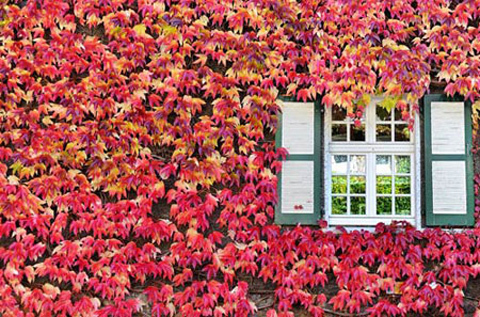 Những ngôi nhà được bao phủ bởi tấm thảm lá đỏ ở Đức