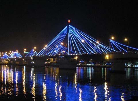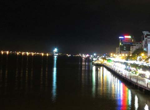 Vẻ rực rỡ của sông Hàn trong đêm.