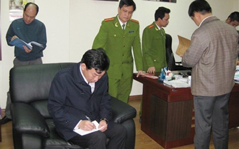 Cơ quan điều tra tiến hành khám xét nơi làm việc của ông Lâm Phúc Hùng (Ảnh: Tiền phong)