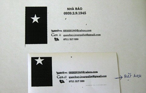 Thời gian qua, trên địa bàn TP. Cần Thơ, ông Huy tự xưng là PV báo Công Lý, sử dụng danh thiếp có in quốc kỳ Việt Nam.