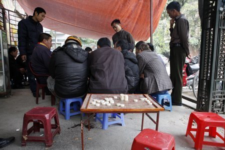 Trong khu đô thị Văn Quán (Hà Đông – Hà Nội) có một quán nước cùng hơn chục bàn cờ tướng để khách uống nước ngồi chơi.