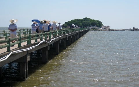 Đường đi vào Hòn Đá Bạc với cây cầu dài hơn 100m.