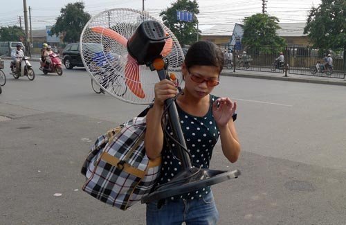 Ngoài đồ dùng cá nhân và sách vở, thí sinh và người nhà còn mang theo cả mỳ tôm, gạo và cả quạt để phục vụ kỳ thi đại học năm nay.