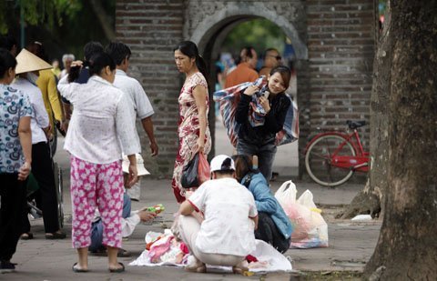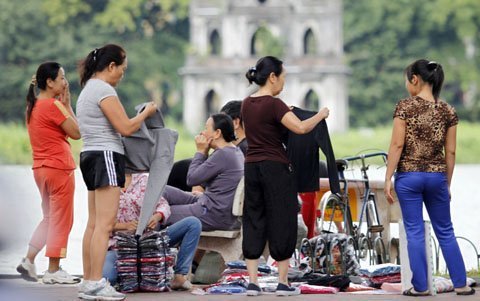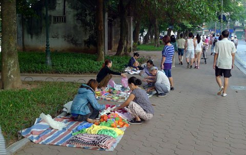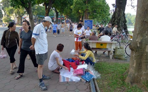 Cùng với lời mời gọi là các mặt hàng phong phú và đa dạng như quần, áo, đồ dùng nhà bếp, thậm chí cả hoa, quả…Tất cả góp phần làm cho ven Hồ Gươm thành như 'một chợ quê nhếch nhác'.