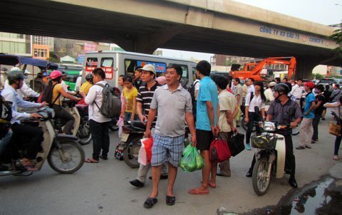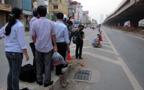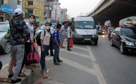 Ngày nào cũng vậy, hàng chục người đứng dưới lòng đường ngã tư Nguyễn Trãi – Nguyễn Xiển đón xe khách dọc đường và ngã tư lớn nhất Hà Nội đã hình thành một bến “cóc”.