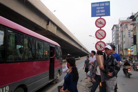 Đón khách giữa đường khi xe bắt đầu đi vào đường dẫn cao tốc Nguyễn Xiển – Pháp Vân