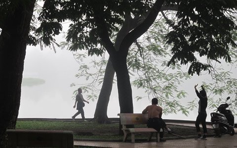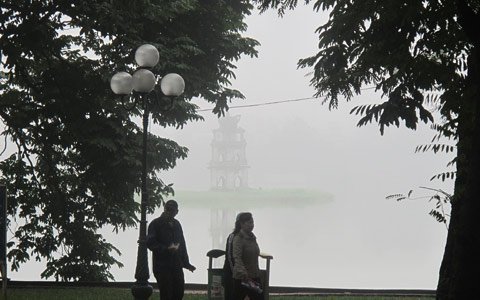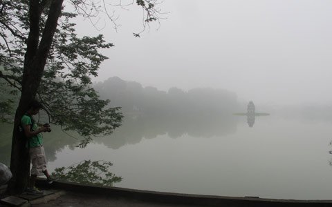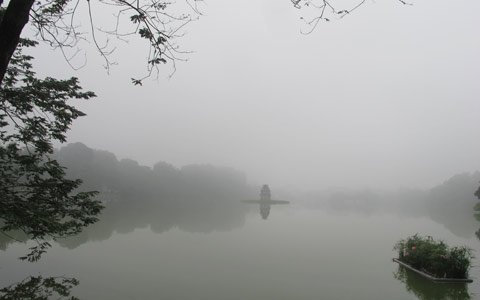 ![]() Hồ Gươm sáng sớm sương mù bao phủ dày đặc khiến cho không gian xung quanh hồ trở nên mờ ảo. |