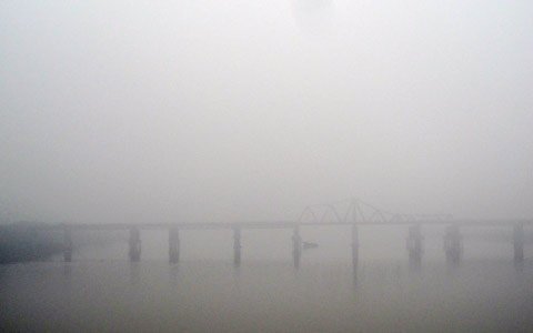 ![]() Đứng từ cầu Chương Dương không thể nhìn rõ cầu Long Biên. |