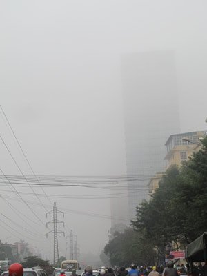 ![]() Những toà nhà cao tầng cũng được phủ trắng sương mù. |