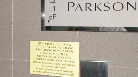 Chúng tôi cũng đã dán những bảng thông báo đề phòng kẻ gian móc túi ở cửa thang máy và trong thang máy để khách hàng cảnh giác.