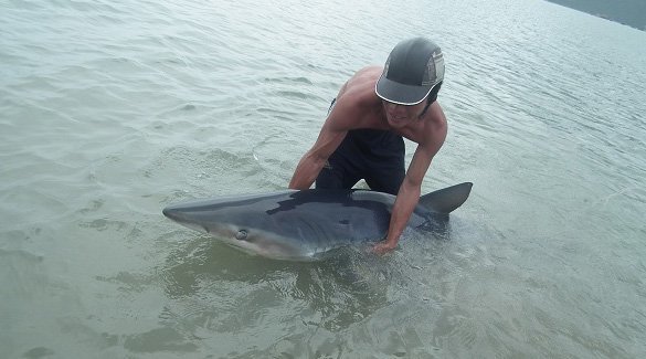 | Một ngư dân ở Côn Đảo đã bắt được con cá mập gần 100kg. (Nguồn: www.condao-tourist.com) |