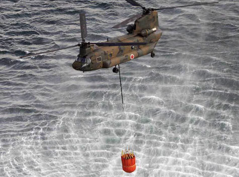 | Chính phủ Nhật cấm sử dụng máy bay trực thăng đổ nước làm nguội lò phản ứng. |