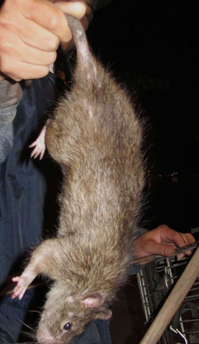 | Chúng tôi đã đi theo thợ săn chuột và chứng kiến họ tóm được con chuột cống khổng lồ này ở gần chợ Châu Long (Hà Nội). |