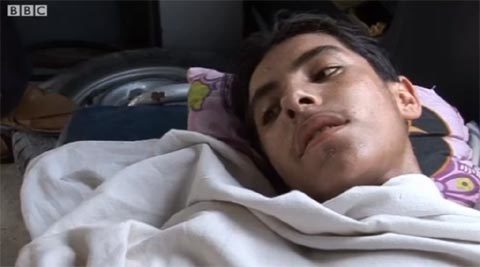 Sau vụ khủng bố, Umar bị mất tay trái còn tay phải bị nẹp và băng bó đầy người.