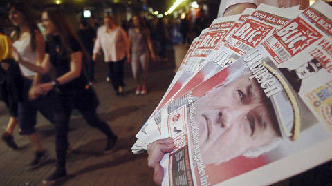 | Báo chí Serbia đồng loạt đưa trên trang nhất vụ bắt giữ. (Ảnh: Reuters) |