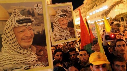 | Những người Palestine giơ cao chân dung cố Tổng thống Yasser Arafat trong lễ tưởng niệm 7 năm ngày mất của ông. (Ảnh: THX) |
