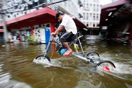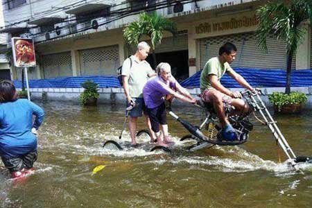 số cách đi lại đầy sáng tạo của người dân Thái lúc mọi nơi chìm dưới nước.