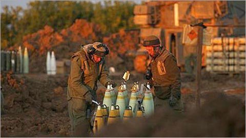 | Binh sĩ Israel đang chuẩn bị đạn pháo tại trận địa (Ảnh: Reuters) |