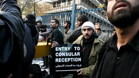 | Hỗn loạn tại tòa nhà sứ quán Anh ở Tehran hôm 29/11. (Ảnh: THX) |