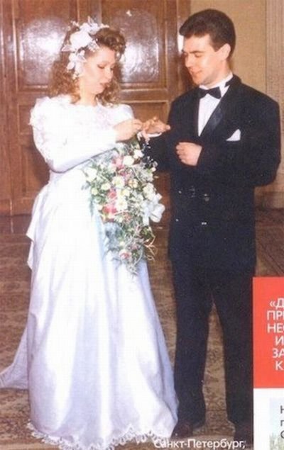 Tổng thống Nga Dmitry Medvedev và phu nhân Svetlana Medvedeva trao nhẫn cho nhau trong ngày cưới vào năm 1982.