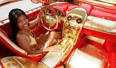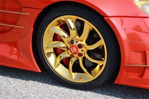 Được biết toàn bộ thân xe được phủ 25 lớp sơn đỏ. Mỗi bánh xe, đèn xe và nội thất xe đều được dát bằng vàng 24K. Tổng số vàng được dùng để trang trí lên tới 5 kg. Ngoài ra, vô lăng, tay phanh còn được nạm 600 viên hồng ngọc.
