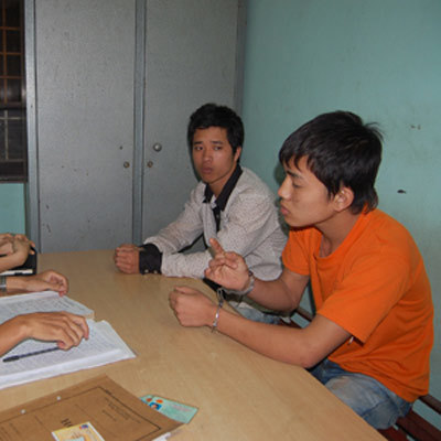 | Hoàng Anh và Hoàn khai nhận hành vi phạm tội tại cơ quan công an. |