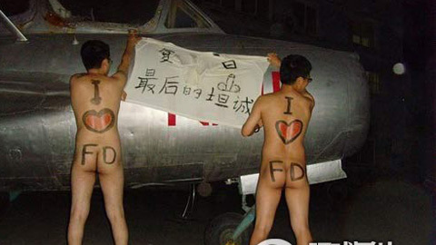 Tháng 6/2009, hai sinh viên trường đại học Fudan, Thượng Hải (Trung Quốc) đã nude toàn thân chạy xung quanh trường để chụp hình kỷ niệm.