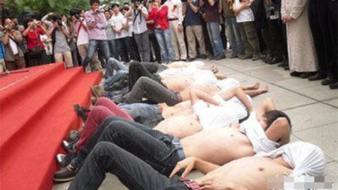 Hôm 25/5/2011, tại lễ khai mạc triển lãm sản phẩm tốt nghiệp 2011 của Học viện Mỹ thuật Quảng Châu, Trung Quốc, trong khi thầy giáo thao thao bất tuyệt trên bục sân khấu, bất ngờ một tốp sinh viên đồng loạt tốc áo, nằm ra sân. Sinh viên Mỹ thuật thường có những ý tưởng bất ngờ, có lẽ đây là một trong những ý nghĩ đột phá vào thời điểm đó chứ có lẽ không phải là họ phản đối bài phát biểu của thầy giáo.