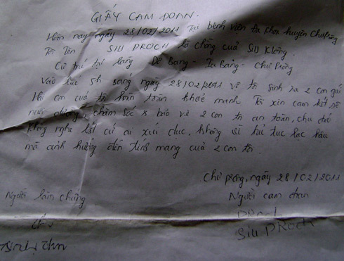 Giấy cam kết nuôi con của anh Siu Droch.