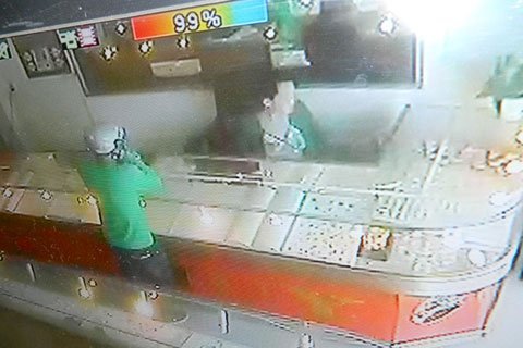 Camera an ninh của tiệm vàng ghi lại đối tượng nghi vấn mặc áo xanh (Ảnh: Báo Quảng Ngãi)