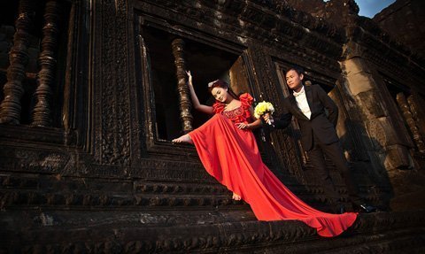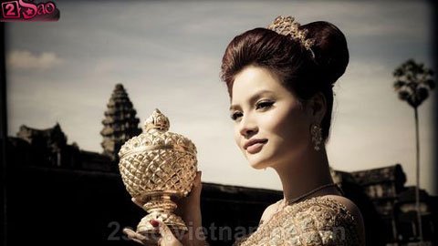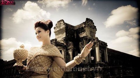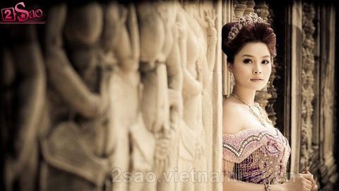 | Những bộ ảnh cưới của Vũ Thu Phương đẹp lỗng lẫy khi mà cô hóa thân vào cô gái Khmer hiền lành e ấp đúng như "dâu mới về nhà chồng" (Ảnh: 2sao) |