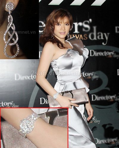 | Chiếc đồng hồ nhãn hiệu Piaget trị giá hơn 6 tỷ đồng (300 ngàn USD) cộng với đôi bông tai trị giá hơn 600 triệu đồng. |