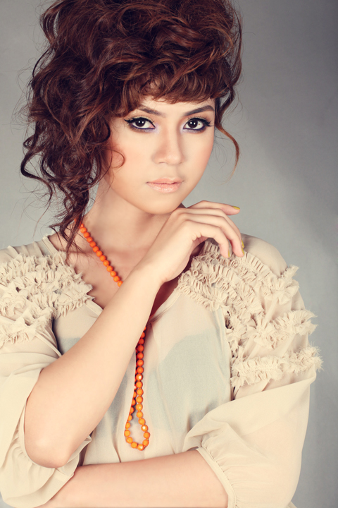 Trong bộ hình chụp studio trước giờ album ra mắt, Mi Lan trang điểm ấn tượng với tóc bới cao, mắt kẻ Cleopatra, tông màu cam nóng, quen thuộc và son môi hồng nhạt... như một cô búp bê gọn gàng, nhỏ nhắn.