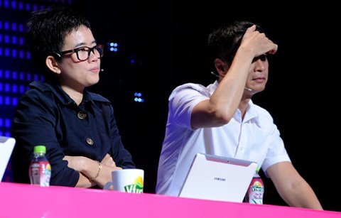 | Nhạc sĩ Phương Uyên và đạo diễn Lê Hoàng ở ghế nóng giám khảo. |