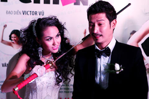 Hai người đẹp Phi Thanh Vân và Vân Trang cầm kim tiêm và kiếm Nhật truy sát chú rể Huy Khánh trong ngày đón cô dâu Ngọc Diệp.